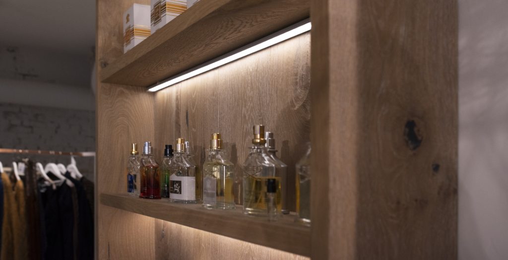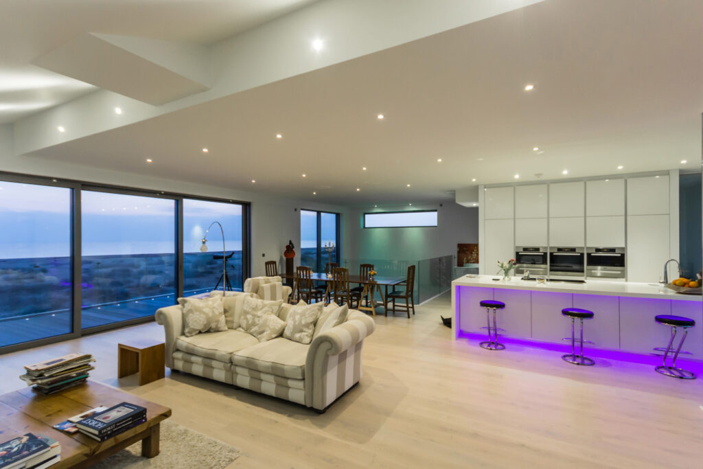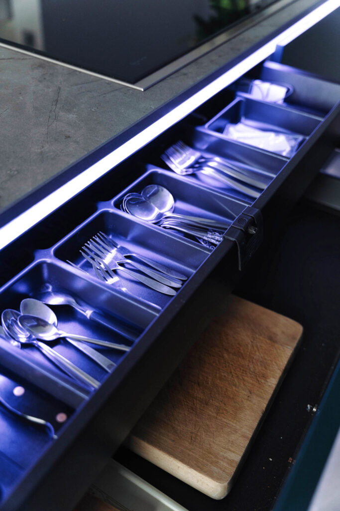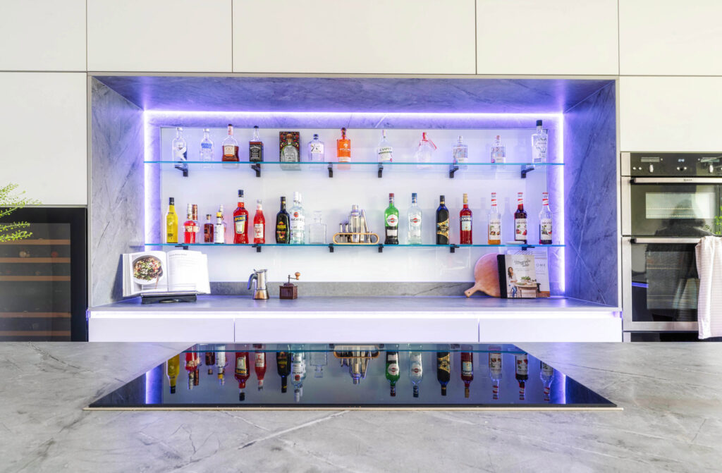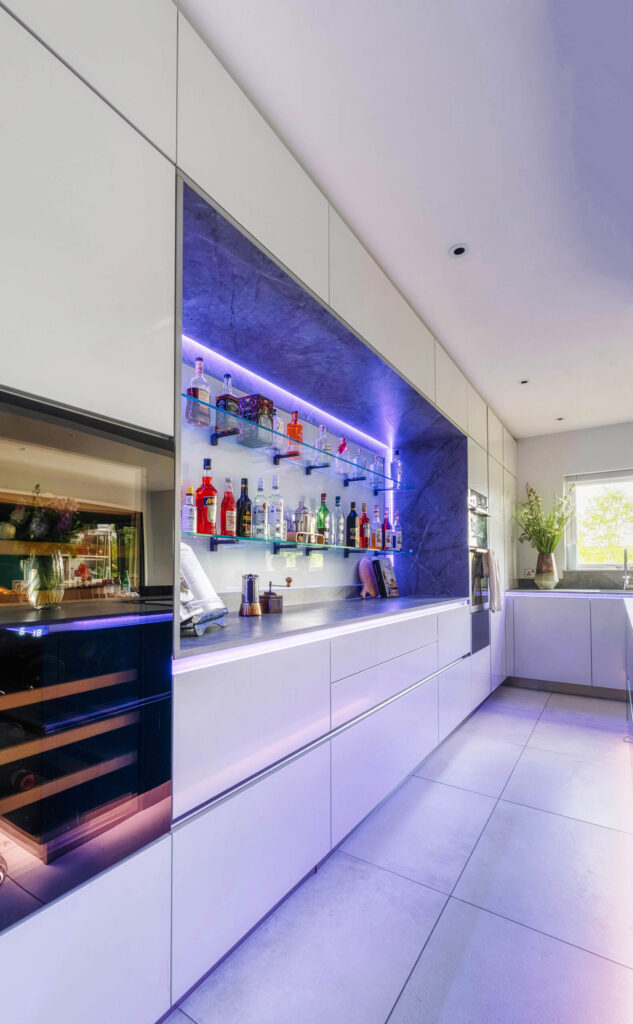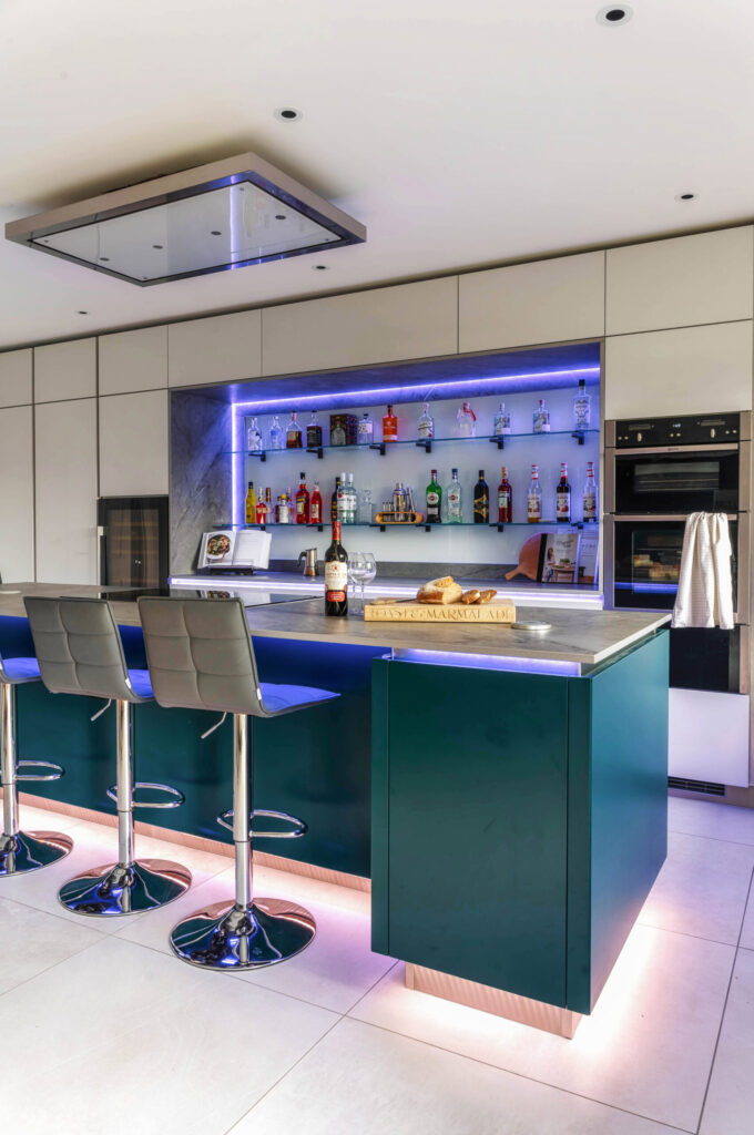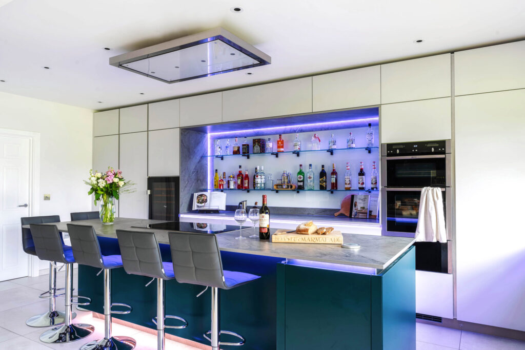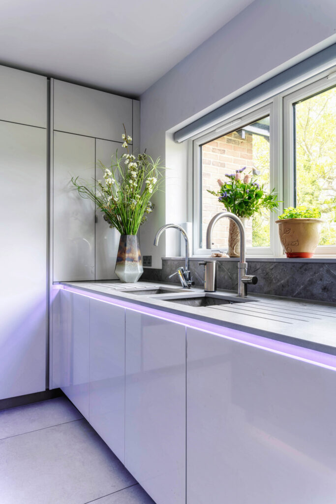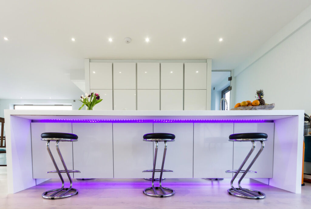 A combination of 1901 and colour change strip make for a dramatic effect in this modern kitchen